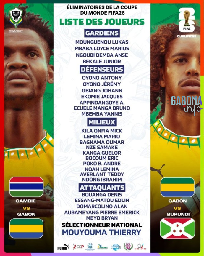 Parmi les joueurs convoqués, Mouyouma s’appuie sur ses cadres : Aaron Appindangoye, Guélor Kanga, Mario Lemina, Denis Bouanga et le capitaine Pierre-Emerick Aubameyang, en grande forme ces dernières semaines. Leur expérience et leur leadership seront essentiels pour guider la sélection dans cette double confrontation cruciale.