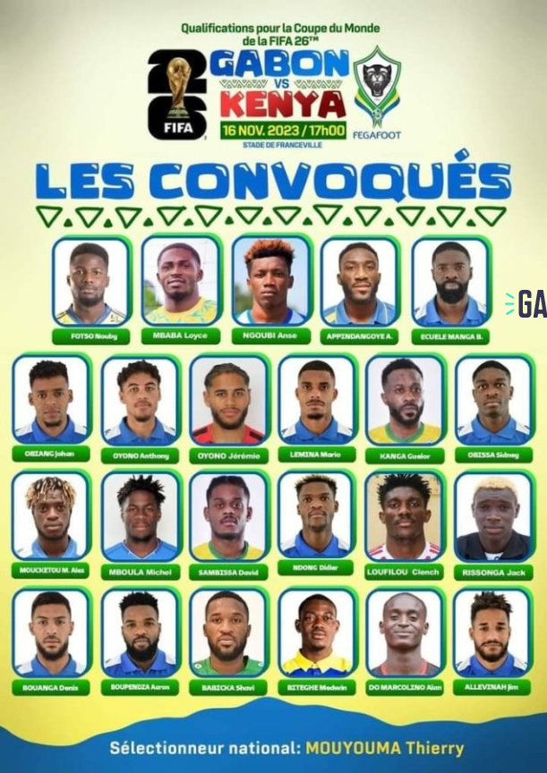 Depuis ce mardi 7 novembre 2023, Thierry Mouyouma, sélectionneur national a rendu public via les services de communication de la Fédération gabonaise de football (Fegafoot), sa liste des 23 joueurs retenus pour la première sortie des éliminatoires de la Coupe du monde 2026.